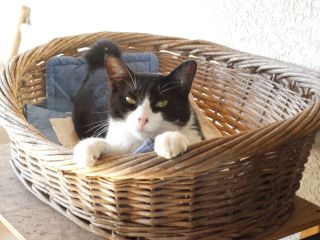 16歳 オス モコの弟 両手、両足の白い模様が特徴。 若い頃から、お客様係のエースとして頑張っています。 落ち着いている時は、何でもされ放題ですが 夏の暑さが大の苦手。 |